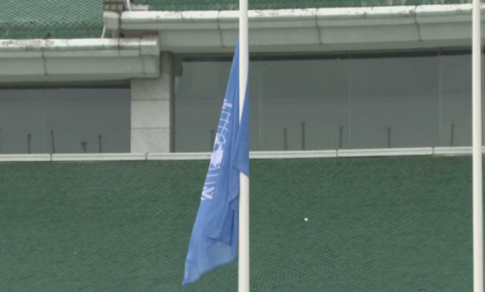 Сино-белото знаме на ОН е на половина копје пред канцелариите во Бангкок, Токио и Пекинг, како и пред Катманду, Кабул и Најроби.