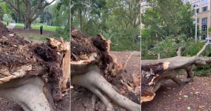 Две лица се повредени во центарот на Сиднеј откако силните ветришта урнаа дрво во Хајд Парк. Брза помош превезе едно лице во Св. Винсент со полесни повреди, додека на уште едно лице му била укажана лекарска помош.