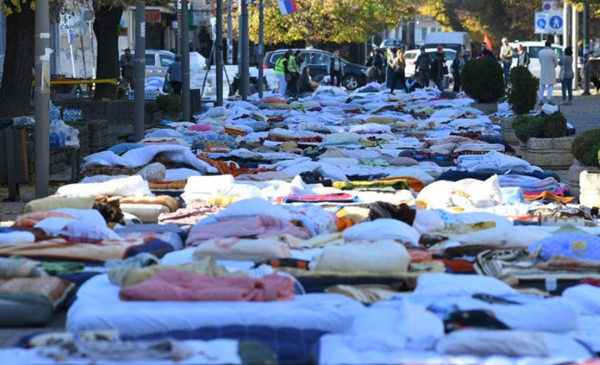 Белградските студенти и граѓани пристигнаа во градот Инѓија (кој се наоѓа помеѓу Белград и Нови Сад) синоќа, каде што спиеја на улиците.