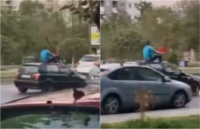 Во врска со објавената снимка на социјалните мрежи на 30.09.2025 година на булеварот „Партизански Одреди“ во Скопје на која гледа како се движи патничко возило „голф“ со скопски регистарски ознаки при што на кровот од возилото се превезува лице кое ја загрозува сопствената безбедност и безбедноста на другите учесници во сообраќајот, од страна на полициски службеници од СВР Скопје пронајдено е возилото, лицето кое го управувало С.Ф. и лицето кое се превезува на кровот од возилото А.И., извести МВР.