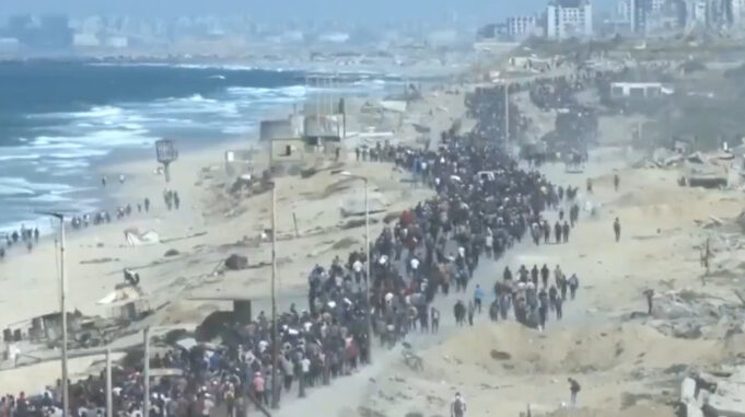 Текстот (Видео) Реки од луѓе се упатуваат кон северна Газа е превземен од МАКФАКС.