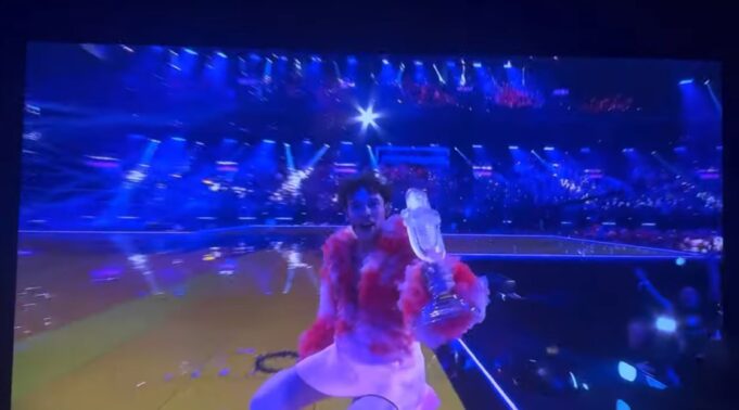 Швајцарскиот евровизиски победник Немо го скрши стаклениот микрофон кој го доби, погледнете го видеото.