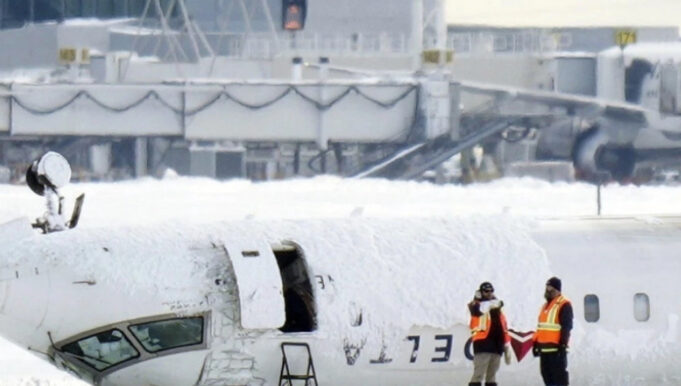 Авион на „Делта ерлајнс“ се урна при слетување на меѓународниот аеродром „Пирсон“ во Торонто во понеделникот, при што крилото се скинало и се запалило, а трупот на авионот се превртел наопаку.