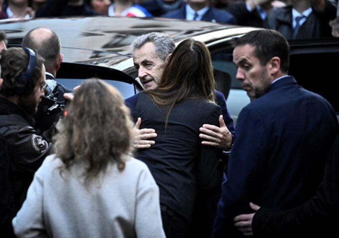 Николас беше придружуван од неговата сопруга Карла Бруни кога беше однесен во парискиот затвор Ла Санте. Тие се држеа за раце, се прегрнуваа и се бакнуваа пред Никола да влезе во полициско возило кое го однесе во затвор.