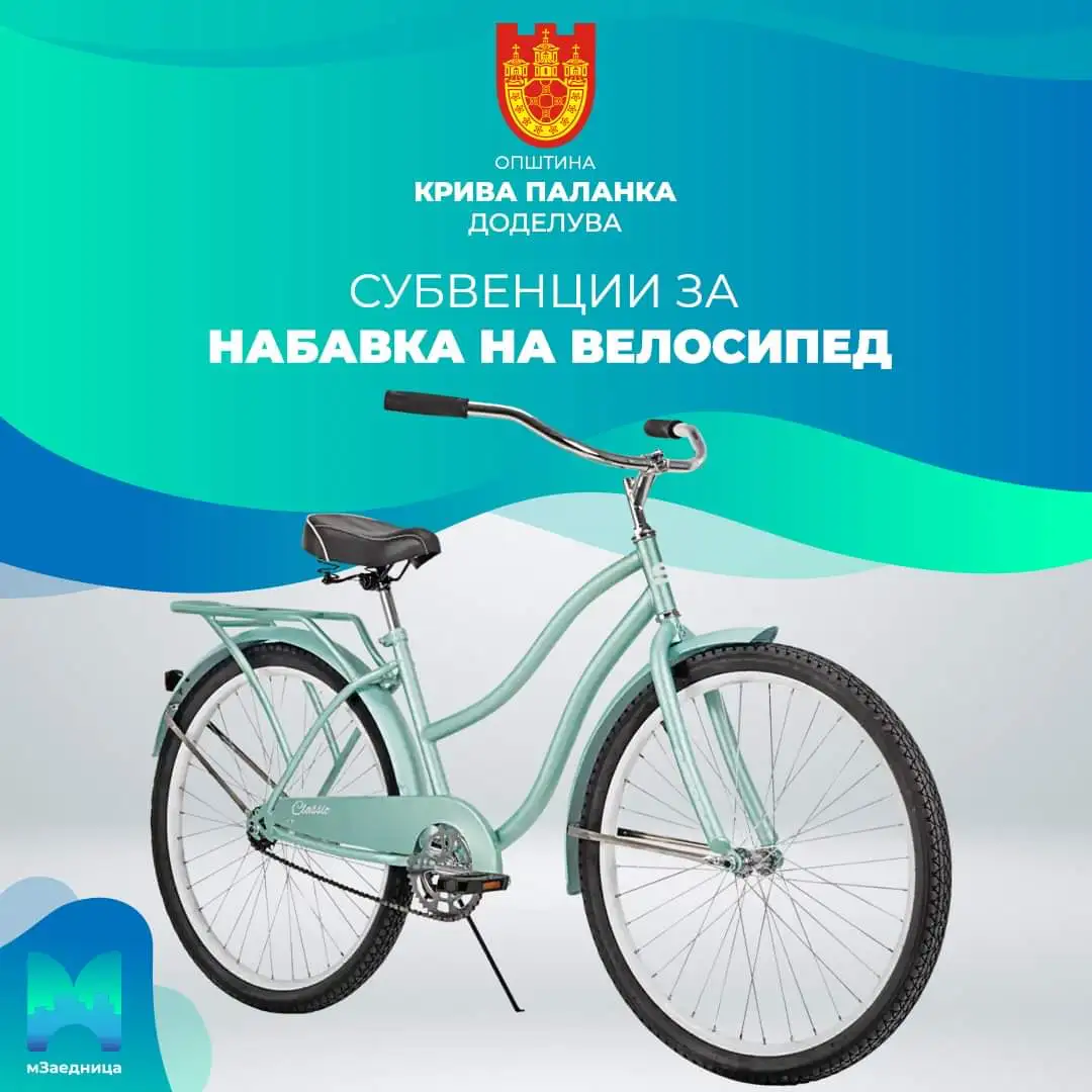 Општина Крива Паланка го објави јавниот повик за субвенции на млади момчиња и девојчиња од градот за набавка на велосипед.