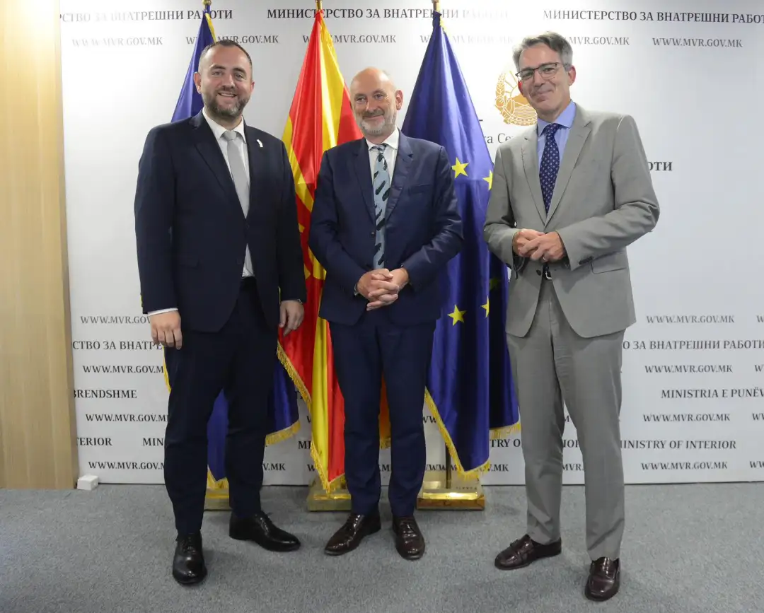 Министерот за внатрешни работи Панче Тошковски заедно со директорот на Бирото за јавна безбедност Александар Јанев и државниот секретар во МВР Сашо Петрушевски, оствариле средба со заменик генералниот директор на Генералниот директорат на ЕУ за миграција и внатрешни работи при Европската комисија, Оливие Ониди, придружуван од амбасадорот на ЕУ во Република Северна Македонија, Дејвид Гир.