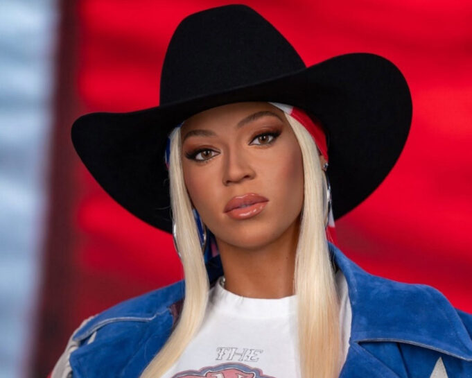 Оваа фигура му оддава почит на албумот на Бијонсе Cowboy Carter, кој и донесе Греми за најдобар кантри албум на годината оваа година. Восочената Бијонсе носи црна каубојска капа, тексас јакна со реси и тексас шорцеви. Сè е во боите на американското знаме.