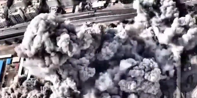 Израелските одбранбени сили (ИДФ) објавија снимка од воздушен напад врз, како што наведуваат, „штаб на иранскиот терористички режим“ во Техеран.