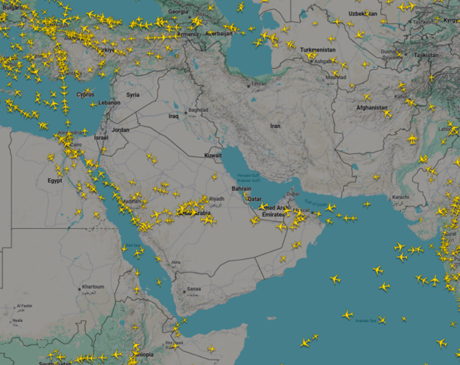 Според страницата за следење летови Flightradar24, воздушниот простор над Иран, Ирак, Кувајт, Израел, Бахреин, ОАЕ и Катар остана во голема мера празен во понеделник.