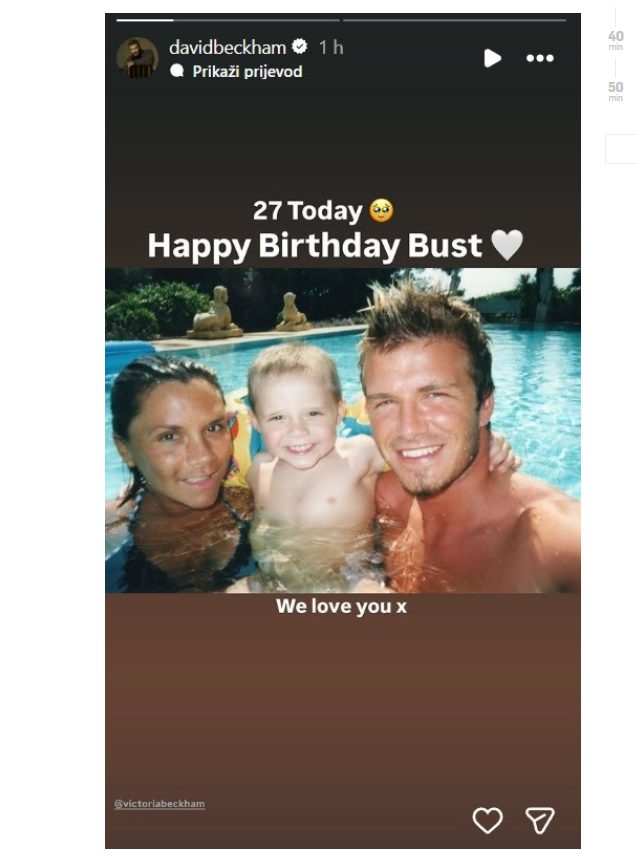 Дејвид објави фотографии од Бруклин од неговото детство на Инстаграм и, тагирајќи ја Викторија, го користеше прекарот на својот син од детството – Бастер. „Денес е 27-ми. Среќен роденден, Баст. Те сакаме “, напиша тој.
