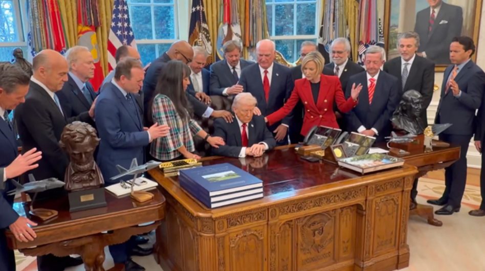 Заменик-шефот на кабинетот на Белата куќа, Ден Скавино, сподели видео од молитвениот состанок на кој се гледа како пасторот го води собирот, повикувајќи се на божествен благослов и водство за врховниот командант во време на засилена воена конфронтација на Блискиот Исток.