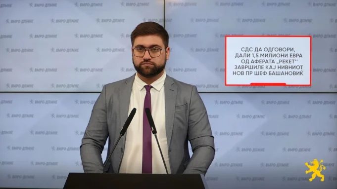 СДС да одговори дали еден и пол милион евра од аферата „Рекет“ завршиле кај нивниот нов ПР шеф Башановиќ, вели Валентин Манасиевски, член на ЦК на ВМРО-ДПМНЕ.