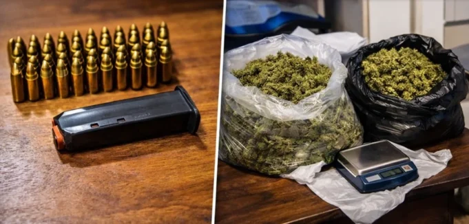 При претрес во нивниот дом во Струга, извршен со судска наредба, пронајдени се и одземени пиштол „Dessert Lort“ калибар 9 мм и празна рамка за пиштолот, кој го поседувале без дозвола и за кој малолетникот изјавил дека родителите не биле запознаени.