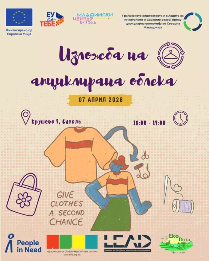 Во Младински Центар Битола на 7 април со почеток во 18 часот ќе се одржи настан „Изложба на апциклирана облека“, кој има за цел да ја промовира креативноста, одржливоста и циркуларната економија.