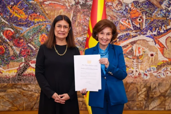 Претседателката Гордана Сиљановска-Давкова денеска ги прими акредитивните писма на новоименуваната амбасадорка на Република Перу со седиште во Букурешт, Глорија дел Кармен Оливарес.