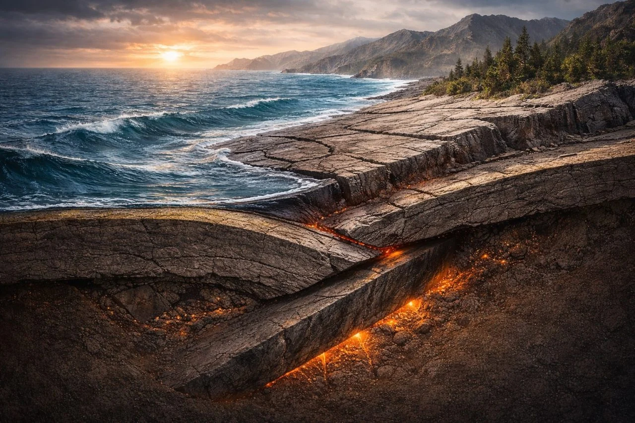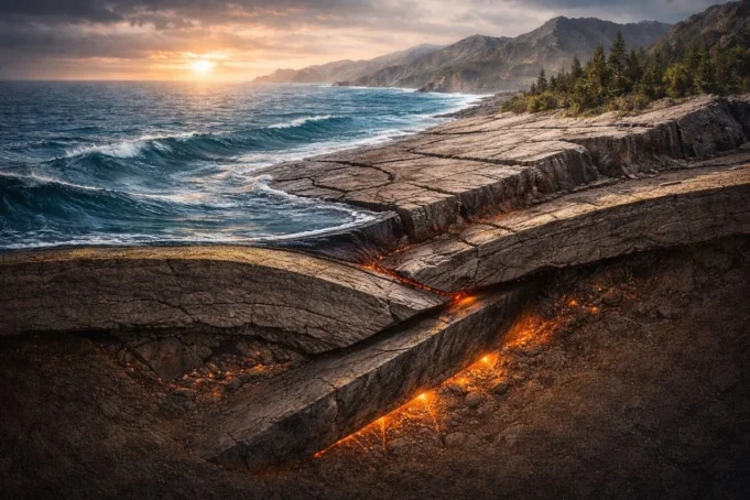 Фрагментот се наоѓа на место каде што се среќаваат три големи тектонски плочи, една од најсеизмички активните области во САД.