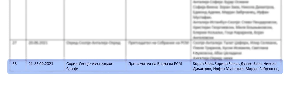 Во државниот авион фамилијарно летал и Заев, како премиер. Самиот на социјалните мрежи во јуни 2021 година се пофали дека тогашниот премиер на Холандија го поканил заедно да го следат фудбалскиот натпревар Македонија-Холандија во Амстердам. На социјалните мрежи Заев објави фотографии од кои се гледа дека заедно со него навива и неговата сопруга, а податоците од Службата за општи и заеднички работи во Владата покажуваат дека со нив бил и нивниот син.