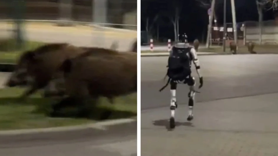 Најновиот пример доаѓа од Варшава, каде што модифициран робот Unitree G1 беше снимен како брка стадо диви свињи на празен паркинг.