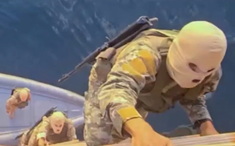 Видео објавено од IRGC ги покажува нивните сили како се приближуваат кон трговскиот брод и ја преземаат контролата врз бродот. Тоа е еден од двата брода запленети од Иран за време на вчерашните инциденти во теснецот.