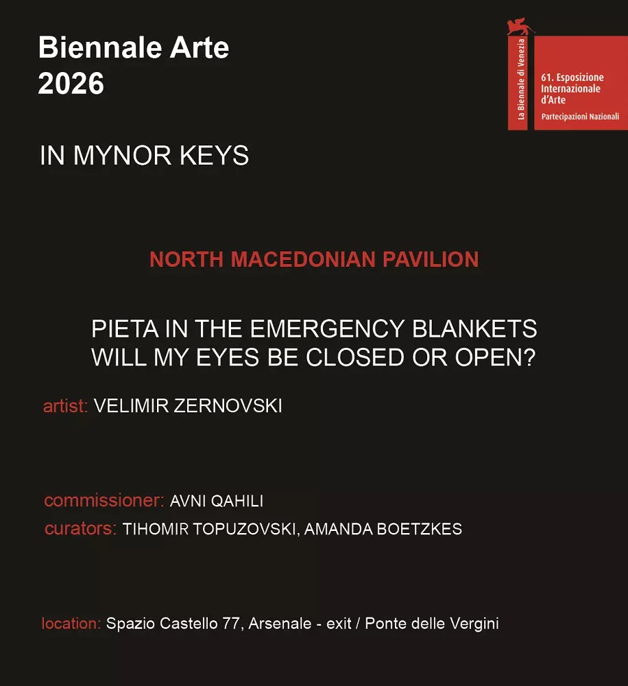 Проектот „Пиета во прекривките на ургентноста“ од реномираниот мултимедијален уметник Велимир Жерновски ќе ја претставува нашата земја на 61. Биенале за уметност во Венеција што ќе се одржи од 9 мај до 22 ноември 2026 година. Македонскиот национален павилјон ќе биде сместен на локацијата „Спацио Кастело 77“ на влезот во престижното Арсенале. Нашето претставување на Биеналето го организира Музејот на современа уметност – Скопје (МСУ), под покровителство на Министерство за култура и туризам. Куратори на проектот се Тихомир Топузовски од МСУ и Аманда Буткез од Канада, а комесар е Авни Ќаили, директор на МСУ.