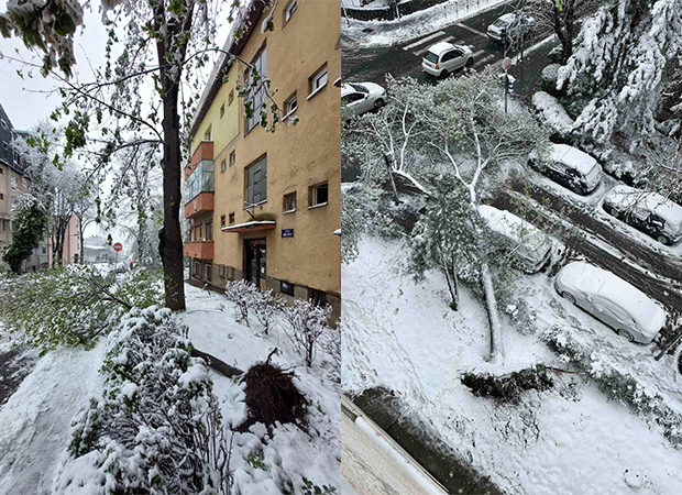 Снегот кој од синоќа паѓа низ цела Србија предизвика бројни проблеми, како во сообраќајот, така и во снабдувањето со електрична енергија. Многу дрвја и гранки не ја издржаа тежината на влажниот снег. Новолистаните млади гранки од дрвја во Белград паднаа на тротоари и улици, како и на паркирани возила. Во белградската населба Миљаковац дрво паднало врз две девојчиња, поради што интервенирала итната помош.