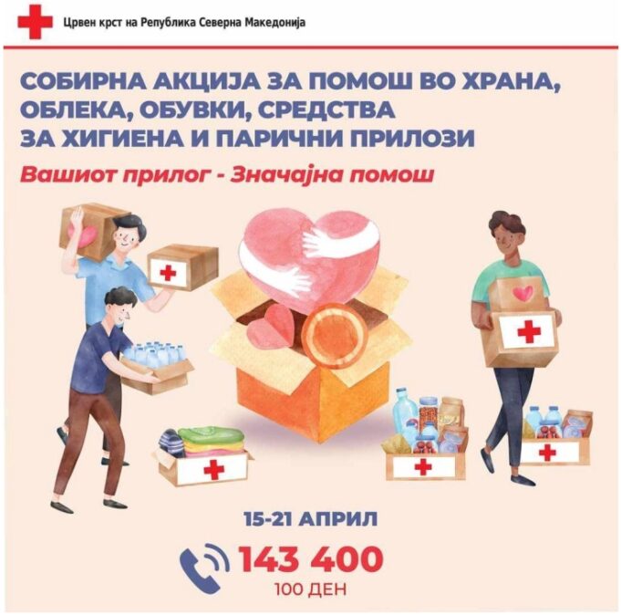 -Во акцијата може да се донира храна, средства за хигиена, облека, обувки и слично. Целта на оваа акција е да се подигне свеста на населението за потребната меѓусебна поддршка и да се обезбеди соодветна помош за најранливата категорија на население, истакнаа од Црвен Крст Делчево.