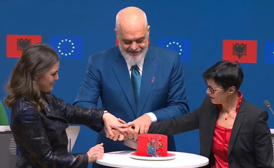 Албанија со торта во Брисел го прослави отворањето на последниот од вкупно шест преговарачки кластери со ЕУ.