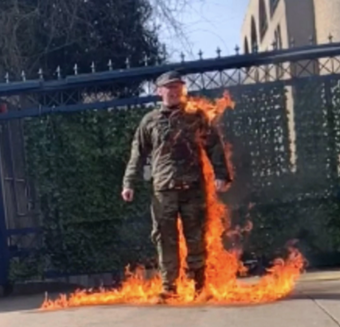 Американски воен пилот се замозапали пред израелската амбасада во Вашингтон во знак на протест против војната во Газа и во моментов е во критична состојба.
