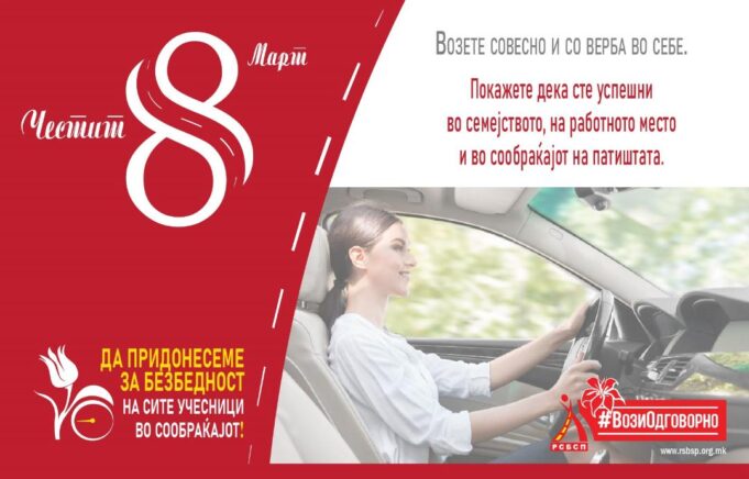 Возете одговорно и безбедно, за вас и за вашите најблиски. Покажете дека сте успешни во семејството, на работно место и во сообраќајот на патиштата. Честит 8 Март!