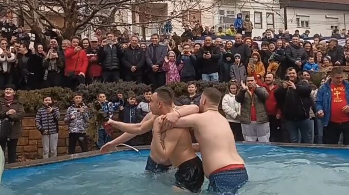 На годинешното празнување на Богојавление-Водици во соборниот тетовски храм „Свети Кирил и Методиј“ осветениот крст во црковниот базен го фати 21-годишниот Давид Дамјановски.
