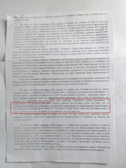 Рацин.мк разговараше со директорката на НУ Филхармонија, Тина Иванова, и таа ни рече дека отстапувањето на салата или на другите простории на Филхармонијата е дел од редовната пракса на установата, и дека се спроведува согласно одлуките за секое барање во координација со Управниот одбор на НУ Филхармонија на Република Северна Македонија.