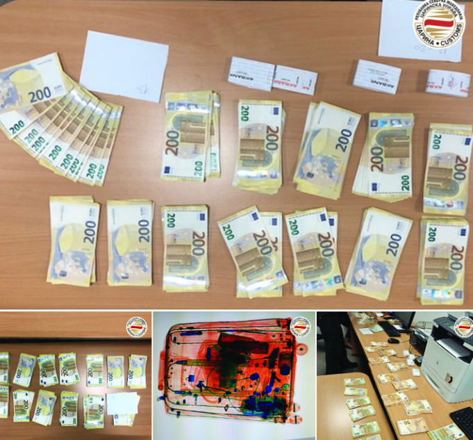 Запленети 50.600 евра коишто патник на влез во државата на царинската испостава Аеродром Скопје не ги пријавил кај царинските службеници.