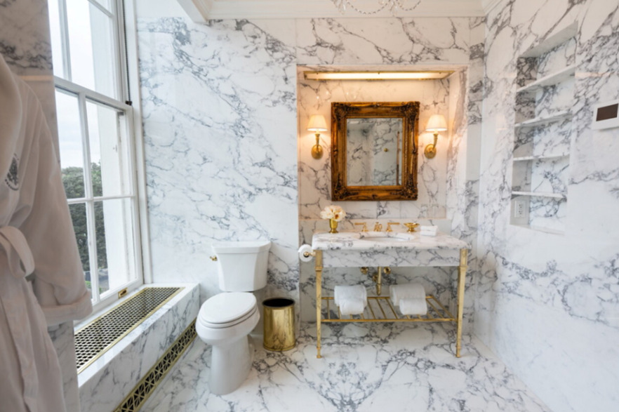 Трамп објави фотографии од новата бања каде што зелените плочки во арт деко стил се заменети со црно-бел мермер. Тој тврдеше дека новиот дизајн е „многу соодветен за времето на Абрахам Линколн и, всушност, може да биде мермерот што првично бил таму“.