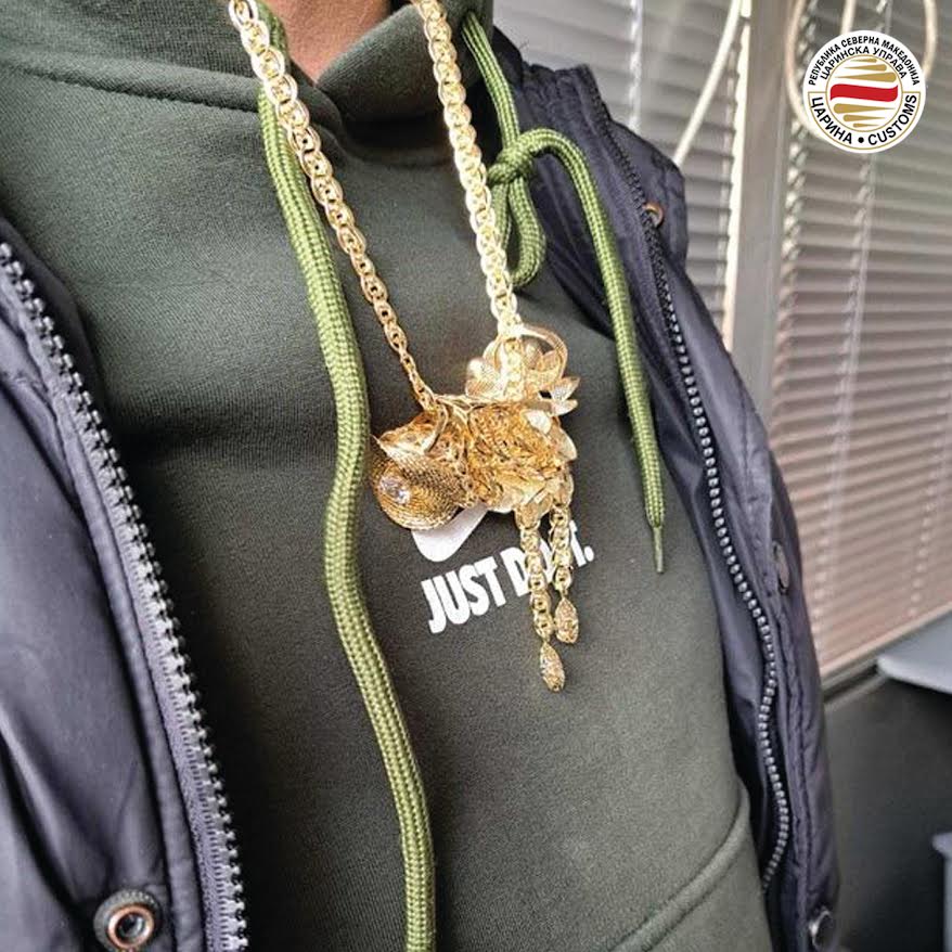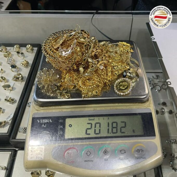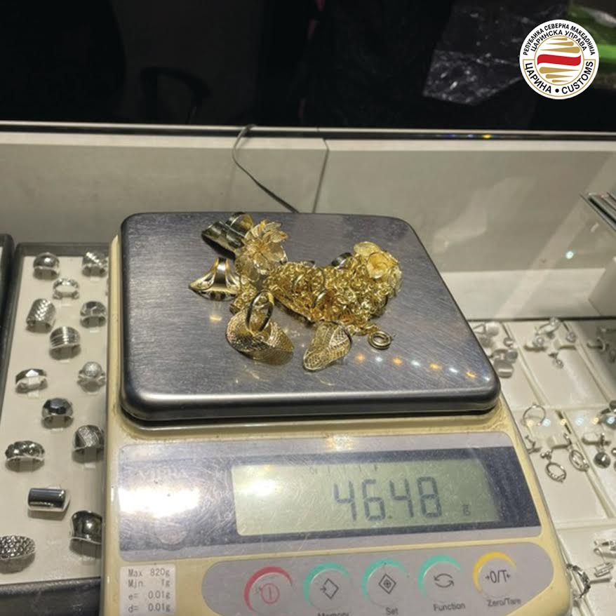 Запленети се 248 грама злато, со проценета вредност од околу 12 илјади евра што двајца сопатници во обид да го скријат планирале да го изнесат од државата без да го пријават кај царинските органи.