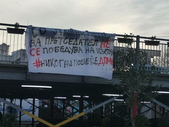 Утринава осамнаа транспаренти во Куманово на кои стоеше натписот „Со лажни потписи за претседател не се победува на избори #НикогашПовеќеДПМНЕ“ со што граѓаните порачуваат дека се прочитани игрите на ВМРО-ДПМНЕ и лажните анкети.