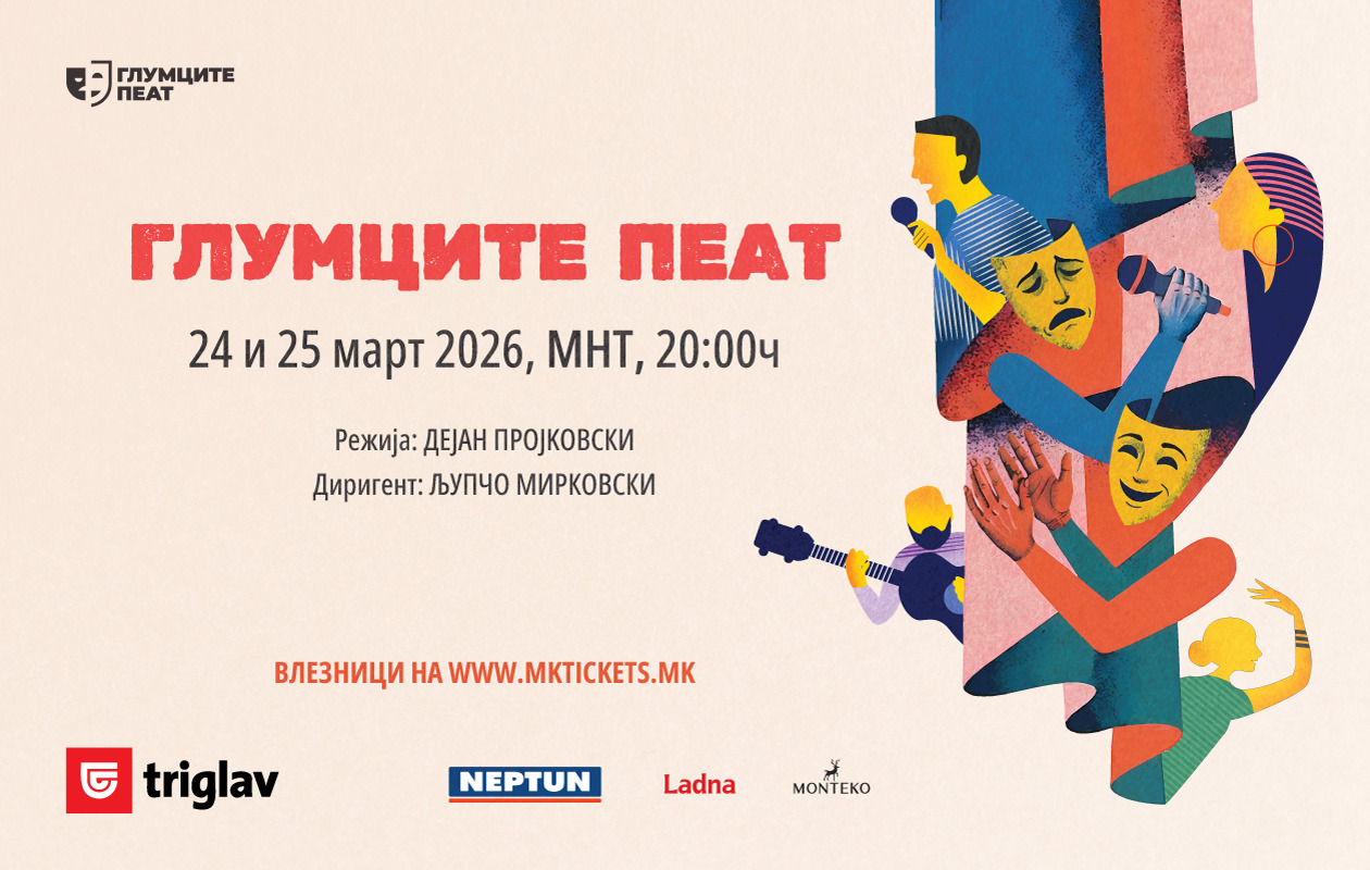 Текстот „Глумците ПЕАТ“ на 24 и 25 март со македонска музика и нови актерски имиња е превземен од МАКФАКС.