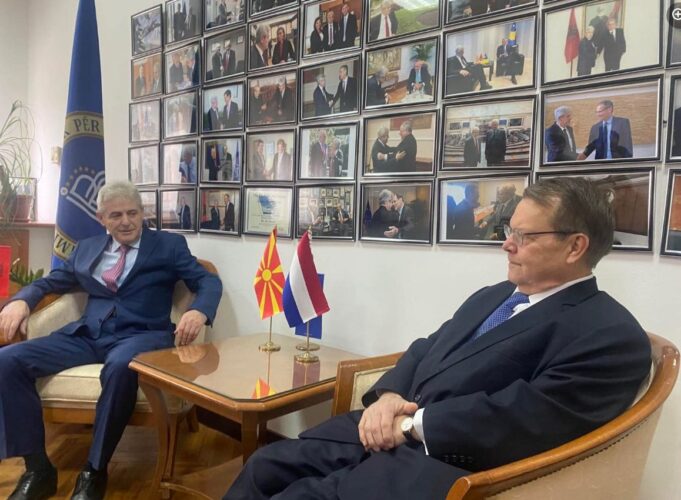-Амбасадорот Дирк Јан Коп се сретна со лидерот на ДУИ Али Ахмети за да ја пренесе пораката дека по двегодишен постојан пад на владеењето на правото, посветеноста на Северна Македонија за членство во ЕУ е загрозена низ политичкиот спектар. Исто така, неприфатливо е несоодветното политичко влијание врз позицијата на претседателот на Врховниот суд, што е судска работа и ќе предизвика силна реакција од Холандија, се вели во објавата.