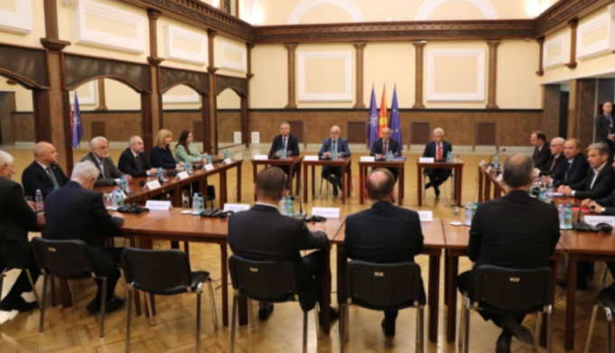 Во Собранието во тек е средбата на премиерот и претседател на СДСМ, Димитар Ковачевски со лидерите на парламентарните политички партии, на која треба да се разговара за европскиот пат на земј