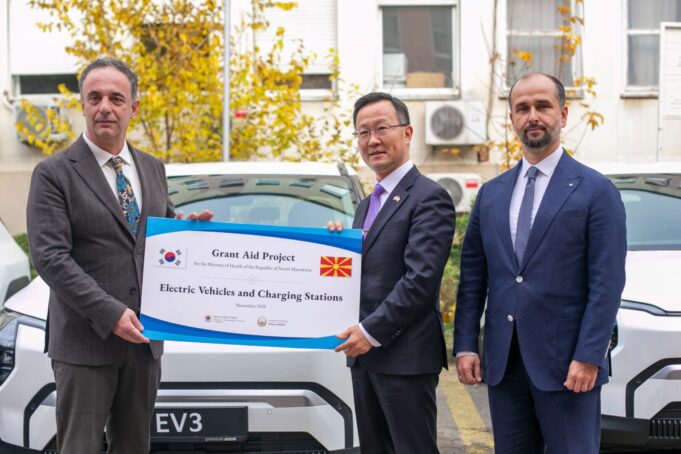 – Заедно со амбасадорот на Република Кореја, Донг-бае Ким, денеска, извршивме примопредавање на првите три возила од грантот, а до крајот на месецот очекуваме да пристигнат уште пет возила, со што целосно ќе се реализира донацијата од вкупно осум електрични возила. Оваа значајна поддршка од Република Кореја претставува важен чекор во зајакнување на институционалните капацитети и ќе овозможи поефикасно, поекономично и еколошко функционирање на инспекциските служби, изјави министерот за здравство, Азир Алиу.