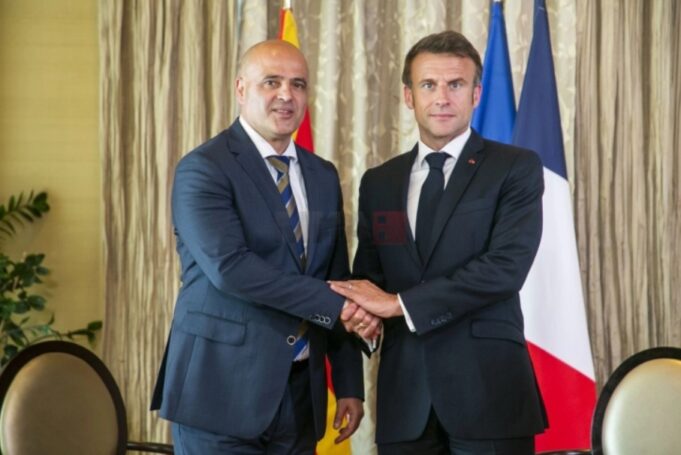 Претседателот на Владата на Република Северна Македонија, Димитар Ковачевски денеска во Братислава се сретна со претседателот на Франција, Емануел Макрон, на која, како што информираат од владината прес-служба, било разговарано за процесот на проширување на ЕУ и интеграцијата на Северна Македонија во Унијата.