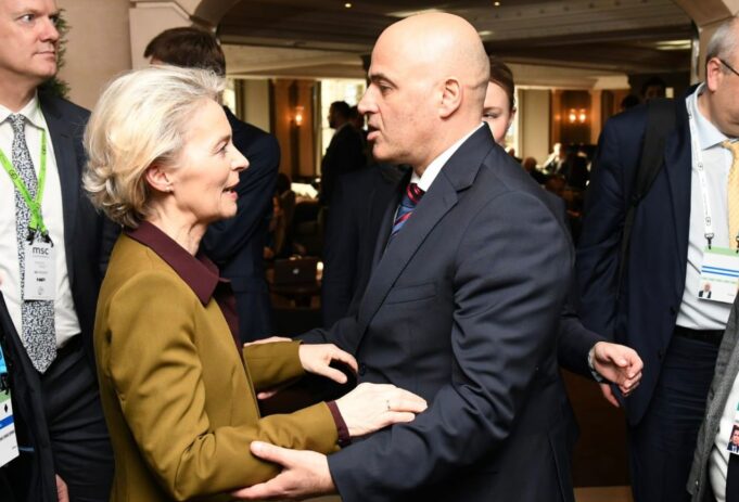 Премиерот Димитар Ковачевски учествува на безбедносната конференција во Минхен, во рамките на која имал куса средба со претседателката на ЕК, Урсула Фон Дер Лајен. Како што вели тој самиот преку социјалните мрежи, на оваа срденчна средба уште еднаш била потенцирана важноста Северна Македонија што поскоро да стане дел од Европската унија.