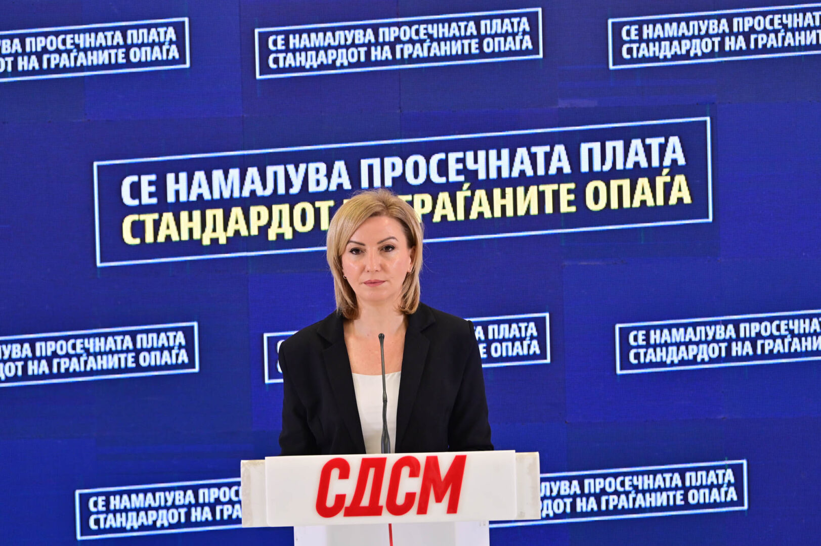 „Во мај 2025 просечната плата била 45 796 денари, а во јули 45 276 денари. Тоа значи 520 денари пониска плата, во услови на повисоки цени на основните трошоци. Намалувањето на реална плата значи дека стандардот на граѓаните опаѓа а расте сиромаштијата. Синдикалната минимална кошничка за четиричлено семејство веќе надмина 65.000 денари месечно. Граѓаните со својата плата купуваат сѐ помалку, бидејќи цените растат, а примањата опаѓаат. Едно просечно домаќинство не може да ги покрие основните трошоци за храна, сметки, превоз и лекови. Ваквиот пад на стандардот е директна последица на неспособната на владата на Мицкоски и ВМРО-ДПМНЕ и промашените економски политики. Ова е влада која воопшто не се грижи за граѓаните и мисли само на својот луксуз“, рече Кузеска.