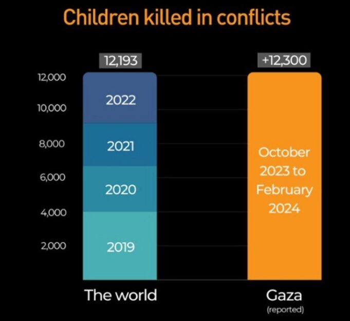 Тој на Икс објави и табела со бројот на загинати деца во Појасот Газа и ширум светот, повикувајќи се на податоци на Обединети нации и Министерството за здравство во Газа.