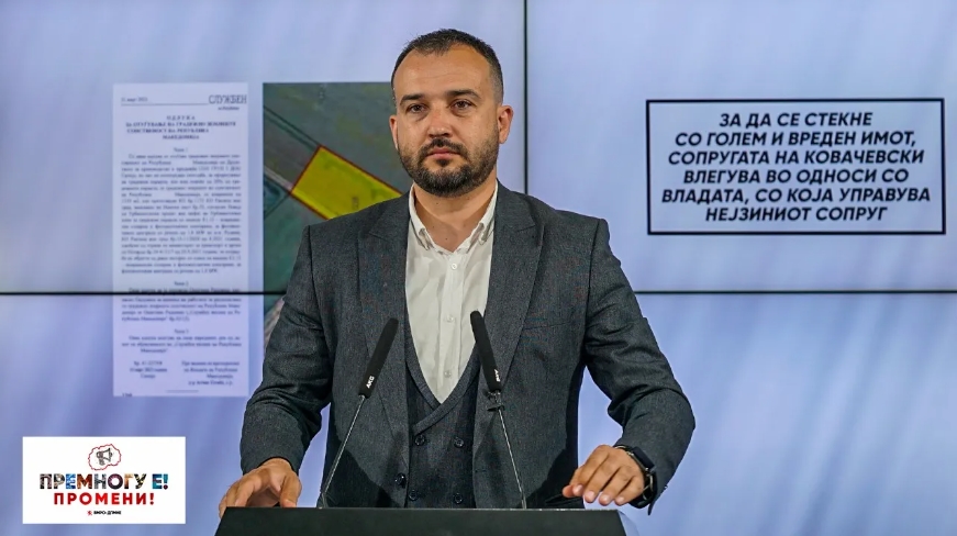 Според него, одлуката на Владата, со која сопругата на Ковачевски добива државно земјиште додека Ковачевски е премиер, е доказ колку власта е забегана и дека не ја интересира ништо, освен сопствениот интерес и интересот на нивните семејства, кои шират бизнис додека тие се на власт. Ова е доказ, како што оценува, дека власта на СДС и ДУИ мора да си замине зашто државата, како што истакна, не смее да биде алатка за богатење на неколку семејства во врвот на власта. Потребни се промени.