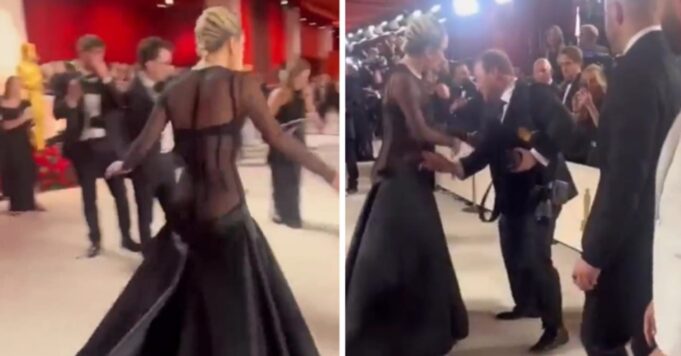 Додека се шетала по тепихот, еден од насобраните фотографи се сопнал и паднал, а пејачката веднаш притрчала да му помогне да стане.