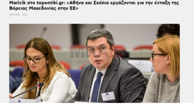 Во интервјуто под наслов „Атина и Скопје работат за интеграција на Северна Македонија во ЕУ“, Маричиќ говори за неодамнешната неформална вечера на лидерите од Западен Балкан во Атина, организирана од грчкиот премиер Кирјакос Мицотакис, за европската перспектива на земјата, но и за Договорот од Преспа и односите со Грција.