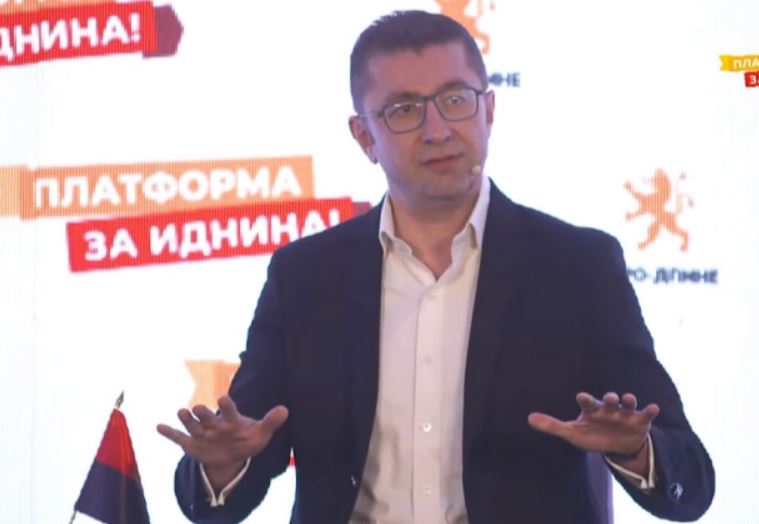 „Јас како човек немам ништо против ниту еден народ, но имам против тоа да се краде Македонија и упропастува бездушно. Затоа што и Албанците во Македонија се заложници на криминалот на ДУИ и затоа што и тие подеднакво живеат тешко исто како што тешко живеат и Македонците, и Србите, и Турците, и Ромите, и Бошњаците, и Власите и сите останати граѓани во Македонија. Тоа што ДУИ беше зелена партија, а сега се големи европејци покажува дека тие имаат десетина лица, но едно лице никогаш не го менуваат, тоа е лицето кое што стално носат со себе, тоа е лицето на криминалот. И за тој криминал мора да одговараат и да има правда за секого. Јас сум свесен дека Али Ахмети и тие малкумина околу него, точно знаат што правеа овие повеќе од 20 години. Свесен сум дека тоа што не им појде од рака со пушка, сакаат сега од внатре, од институциите да го сторат. Нивната цел е една, а тоа е да ја опљачкаат, уништат, понижат и засрамат Македонија. Да ги понижат оние кои ја бранеа Македонија“, кажа Мицкоски.