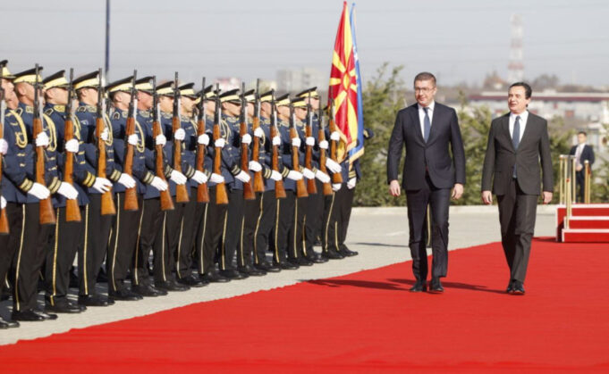 „Сакам да посочам нешто со кое се согласивме со мојот драг колега. Балканот предолго беше место кое интензивно ги полнеше црните хроники во европската и светската јавност. Предолго регионов потроши време на политички прашања, занемарувајќи ги прашањата од реалниот живот на граѓаните. И граѓаните на Приштина и граѓаните на Скопје или било кои други места од двете држави ги интересира подобар живот, подобар стандард, повисоки критериуми за образование. Да ги потенцираме точките кои нè обединуваат и за кои вреди заеднички да работиме. Време е да ги решаваме економските прашања. Оваа средба е токму од таква природа. Тука сме за подобар живот. Токму тоа беше нашиот мотив да ги потпишавме меморандумите и протоколите“, рече премиерот, кој му се заблагодари на Курти за топлото гостопримство и за успешната и конструктивна средба.