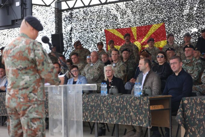 „Денеска можевме да видиме една навистина динамична практична вежба со примена на современо вооружување, со примена на модерна опрема. Јас можам да кажам дека од она што успеав да гои видам можам да заклучам дека навистина капацитетите се на едно високо би рекол одлично ново. Често пати ме прашуваат дали сте задоволни или не сте задоволни. Можам да кажам дека сум презадоволен. Секогаш може да биде подобро Јас сум убеден дека следниот пат ќе биде уште подобро, следниот пат ќе биде уште подобро од претходниот итн. итн. ќе ги градиме капацитетите. Она коешто го очекуваат и граѓаните но и потребите коишто ги наметнува членството во најголемата и најсилната во историјата воена Алијанса, НАТО Алијансата. Како Влада ќе продолжиме да ве поддржуваме и мислам дека ни претстојат многу убави денови. Во делот на техничките капацитети министерот кажа доволно, во делот на финансиските капацитети министерот кажа во соработка со Министерството за финансии што се направивме во овој периодот и што беше она што го затекнавме. Но, бидете убедени дека поддршката за Армијата набавувањето на нова опрема, средства ќе продолжат и во годините коишто следат. За да бидеме навистина една модерна и динамична Армија којашто ќе одговара на НАТО стандардите. Уште еднаш благодарам на поканата и на Генерал штабот. Благодарам на началникот на Генерал штабот да бидам дел од овој прекрасен настан и секогаш кога ќе бидам поканет стојам на располагање, додава Мицкоски.