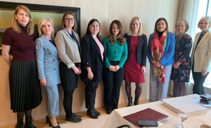 Министерката за труд и социјална политика Јованка Тренчевска заедно со државната секретарката на Секретаријатот за европски прашања Дрита Абдиу Халили и шефицата на канцеларијата на UN Woman во Република Северна Македонија Весна Ивановиќ Кастaред имаа работен ручек со министерката за родова еднаквост и работен век на Шведска Паулина Брандберг.
